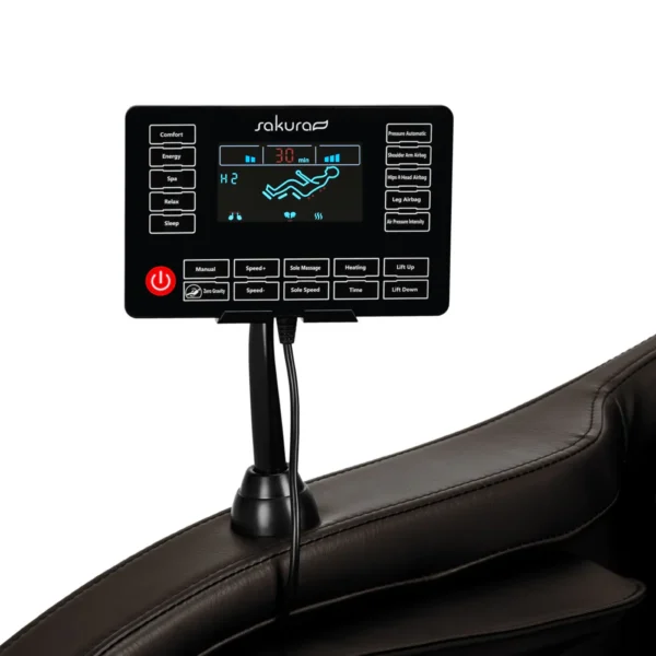 Het moderne bedieningspaneel met helder scherm toont realtime informatie over massagezones, intensiteit, duur en actieve functies. Kies handmatig of automatisch jouw favoriete instellingen en stel de tijd in tussen 5 en 30 minuten.